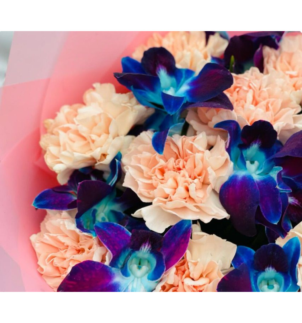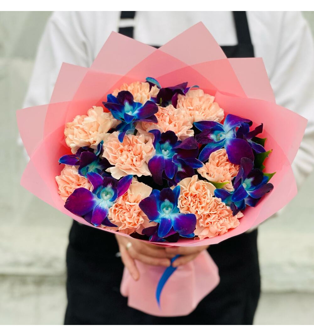 Бұл бір ерекше букетте жиналған әсем орхидеялар мен нәзік диантустың әдемі үйлесімі. Орхидеялар өздерінің керемет сұлулығымен және әсемдігімен танымал, ал диантус балғындық пен жарқын түс береді. Бұл дизайнерлік букет алушының көңілінен шығу және қуаныш пен тыныштық атмосферасын құру үшін сүйіспеншілік пен қамқорлықпен жасалған. Гүлдердің керемет таңдауы бұл букетті кез келген ерекше жағдайға немесе жай ғана сезімдеріңіз бен ризашылықтарыңызды білдіруге тамаша сыйлық етеді.