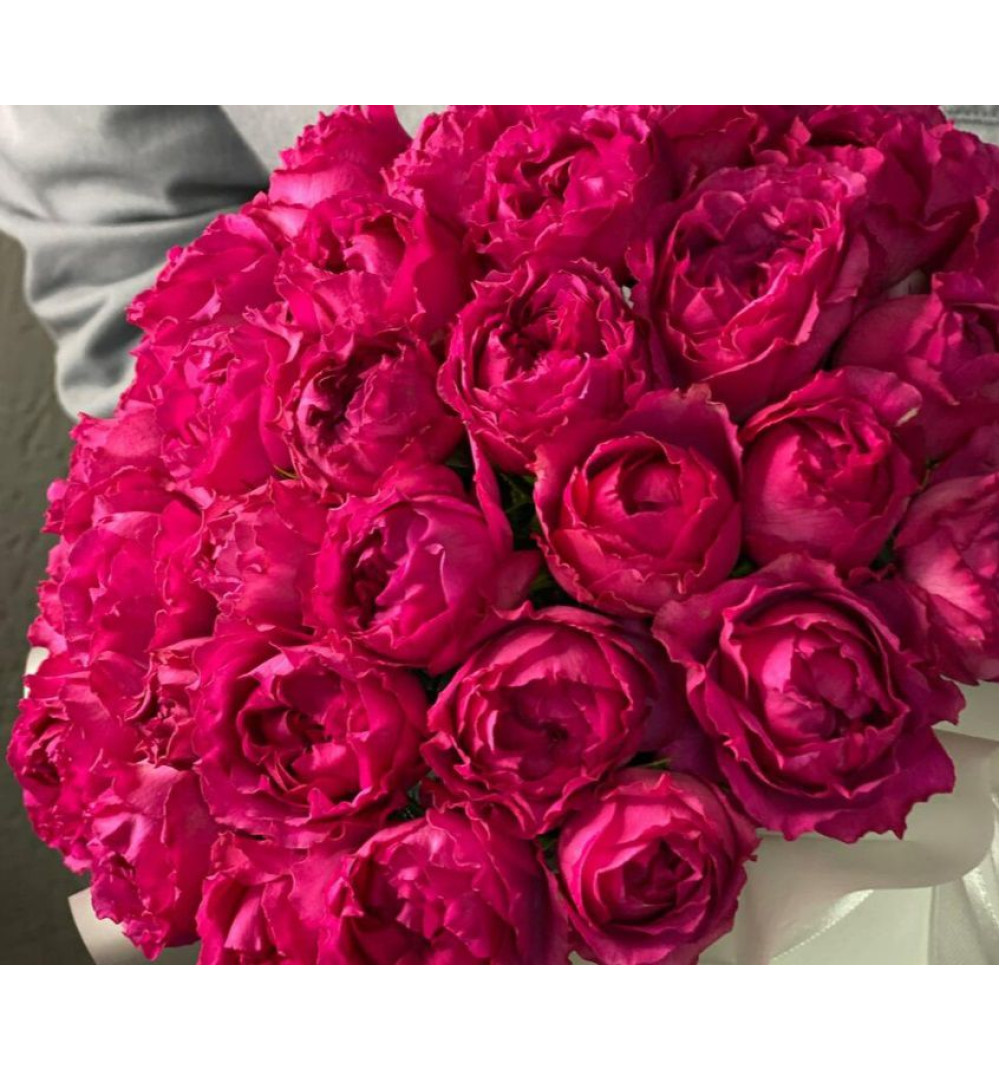 "Пионовидная кустовая роза в коробке" - это великолепный букет, в котором пышные и крупные цветы пионовидной розы гармонично сочетаются с элегантной и стильной коробкой. Этот букет обладает изысканным и роскошным видом, который придаст особенный шарм любому интерьеру. Пионовидные розы известны своей нежностью и красотой, а также приятным ароматом, который создаст атмосферу уюта и романтики. Коробка, в которой представлены эти прекрасные цветы, добавляет шика и элегантности букету, что делает его идеальным подарком для особого человека или особого случая.